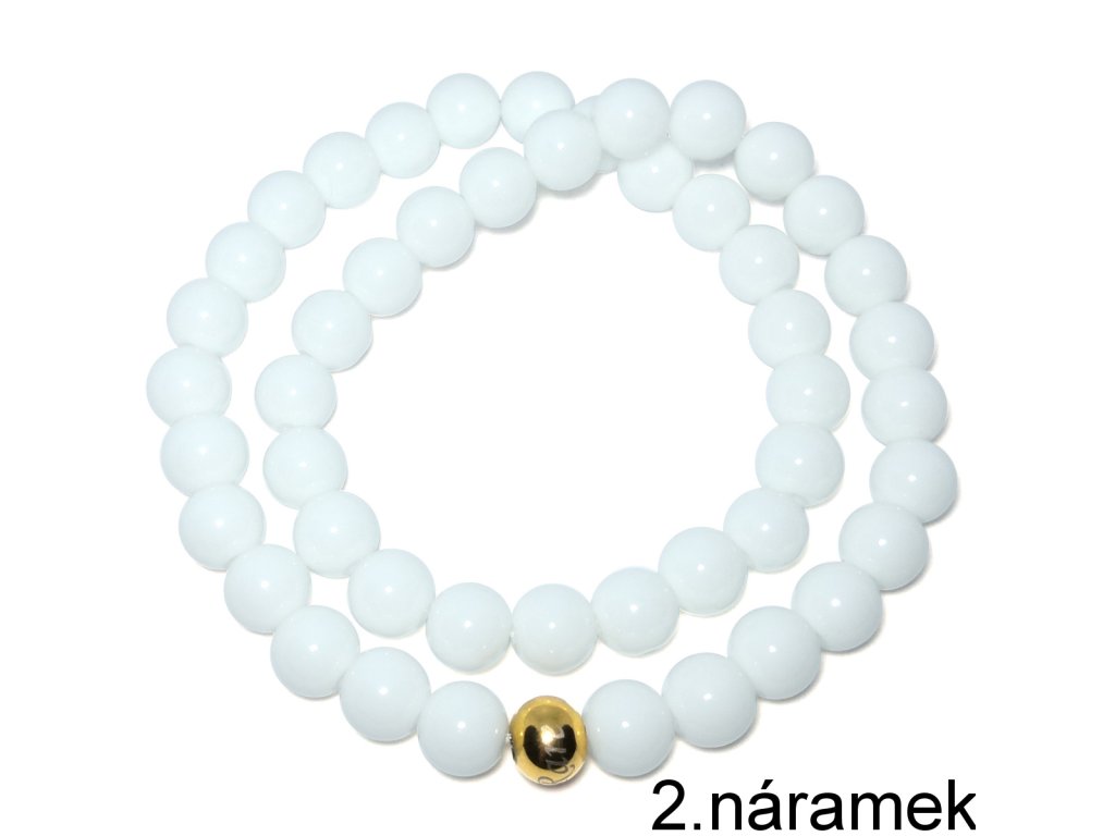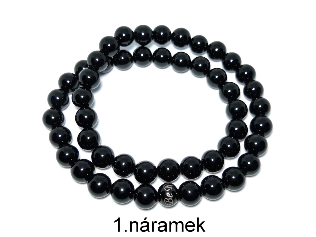 Náramky v základní černé a bílé barvě, černý náramek z achátu a bílý náramek z jadeitu, jsou typu wrap, kdy se jeden náramek skládá vždy minimálně ze dvou náramků.