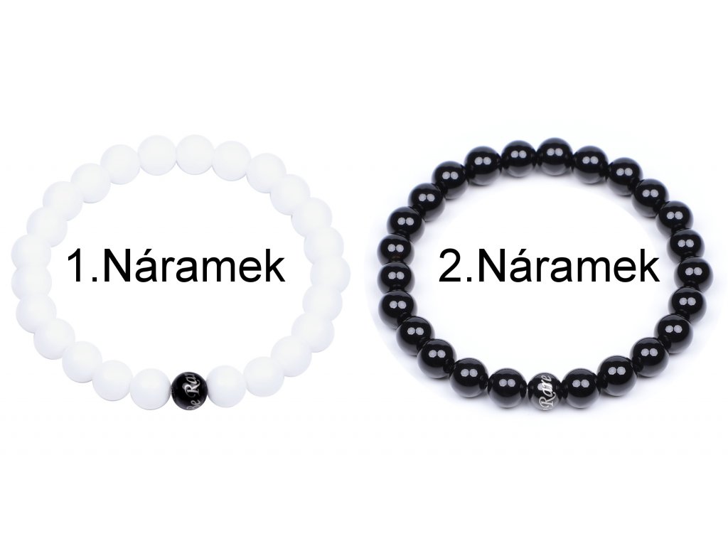 Párové náramky jsou jako Jing a Jang - první náramek z jadeitu bílé barvy a druhý náramek z achátu v černé barvě. Oba náramky pro páry jsou v nejvyšší kvalitě minerálů AAAAAA, a doplňuje je vždy pouze korálek z chirurgické oceli s odolnou PVD povrchovou úpravou.