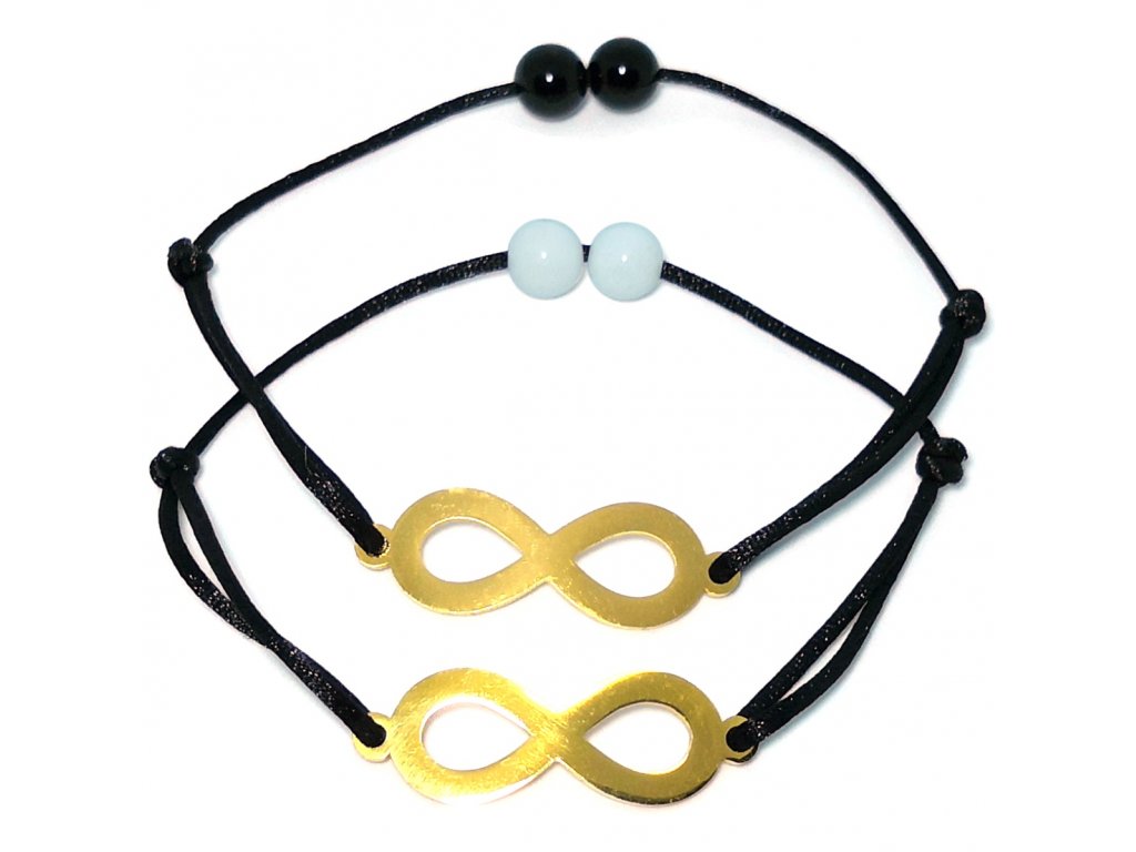 Párové náramky se symbolem nekonečna, který odkazuje do starého Egypta, kde chrámoví kněží kreslili hada požírajícího svůj ocas a přezdívali ho "uroboros" - znak nekonečného návratu k začátku.