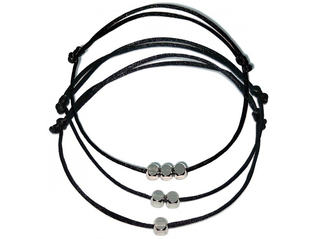 Set párových náramků s jednou až třemi kostkami z chirurgické oceli, počet kusů dle vlastního výběru, tvoří minimalistické módní doplňky na ruku.