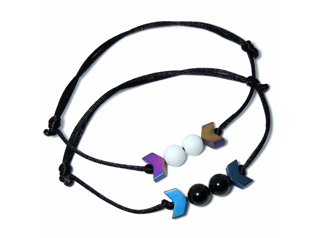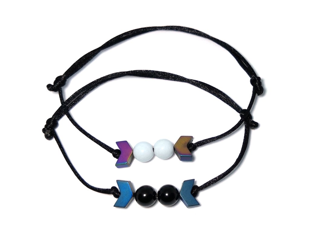 Náramky pro páry - šipky z hematitu, jadeit a achát