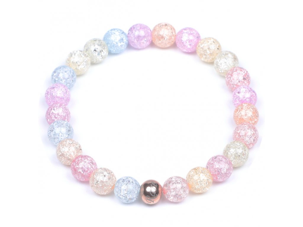 Korálkový náramek z krystalů různě barevných v rozpraskané variantě doplněný korálkem Be Rare. Každý náramek z korálků je originál - barevné korálky jsou náhodně vybírány.
