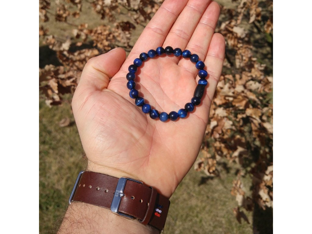 Jen, co jsme uviděli tyto nádherné korálky minerálů - polodrahokamů - tygřího oka, museli jsme je mít a vyrobit z nich náramek pro pány, protože modrá barva je dominantní pro chlapy.