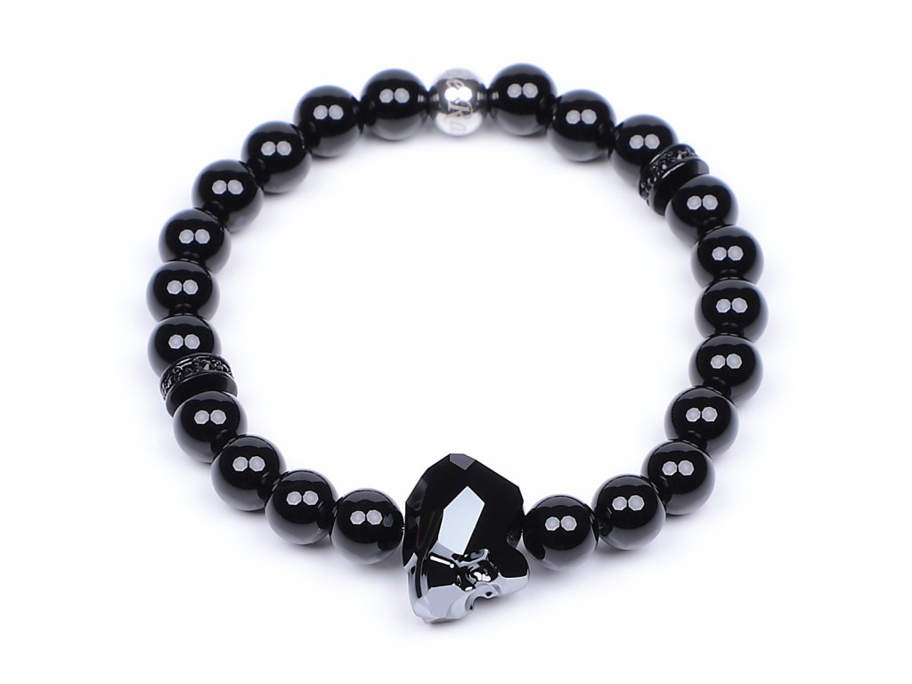 Pánský korálkový náramek Leopard Black se Swarovski® černý achát AAAAAA