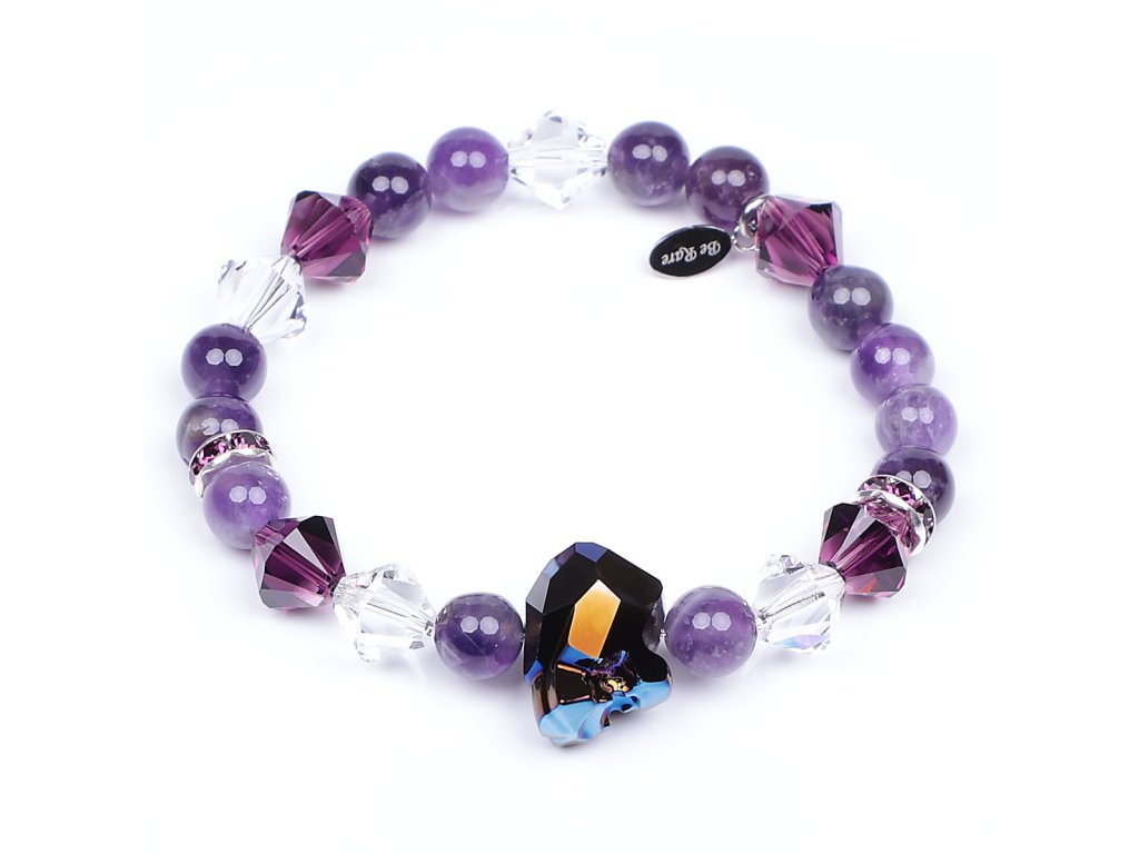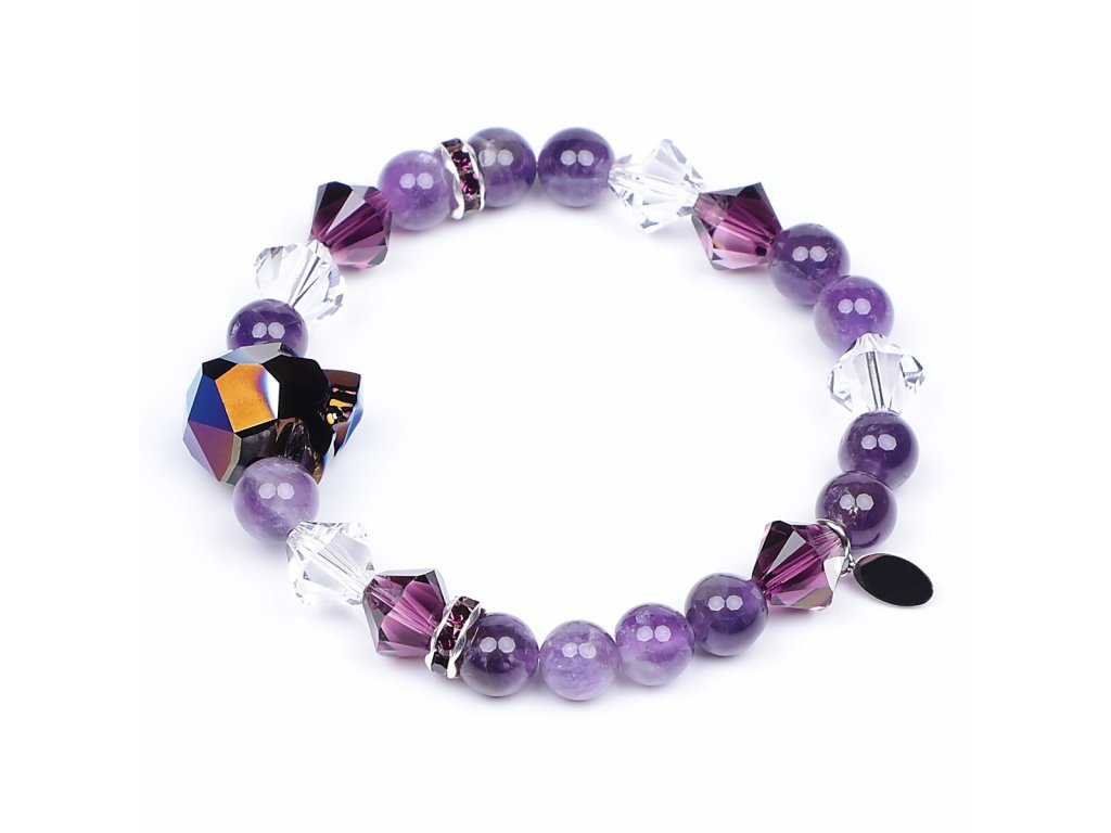 | Materiál korálků: | Elastomer 1%, Chirurgická ocel 4%, Ametyst 50%, Křišťál 45% |