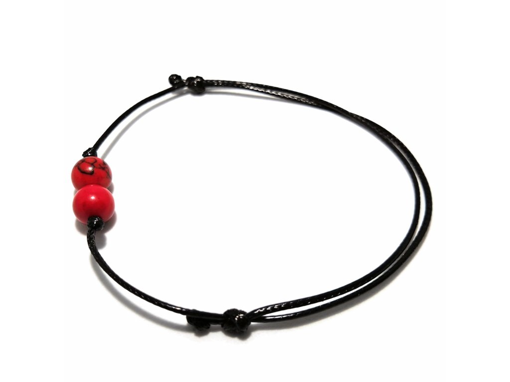 Minimalistický náramek na ruku z korálků tykrysu v rudé barvě protkaný tmavšími žilkami ručně navlečený na odolný nylonový provázek v České republice. Posuvné uzlíky jsou jištěny párem uzlíků, které jsou navíc zalepeny speciálním lepidlem. Tím náramku ze šňůrek získává lepší vlastnosti při stahování či sundavání ze zápěstí. Velikost je universální od 13cm do 22cm, aby vám padl přesně na ruku - můžete si tak sami zvolit, zda chcete nosit provázkový náramek těsnější nebo volnější.