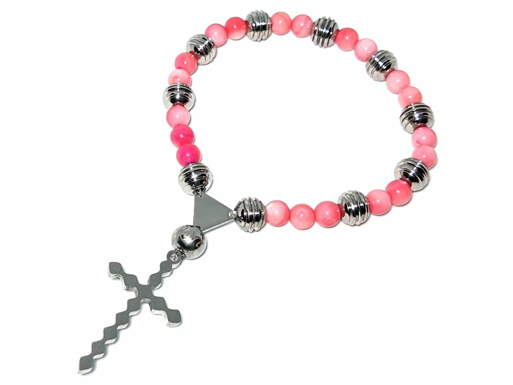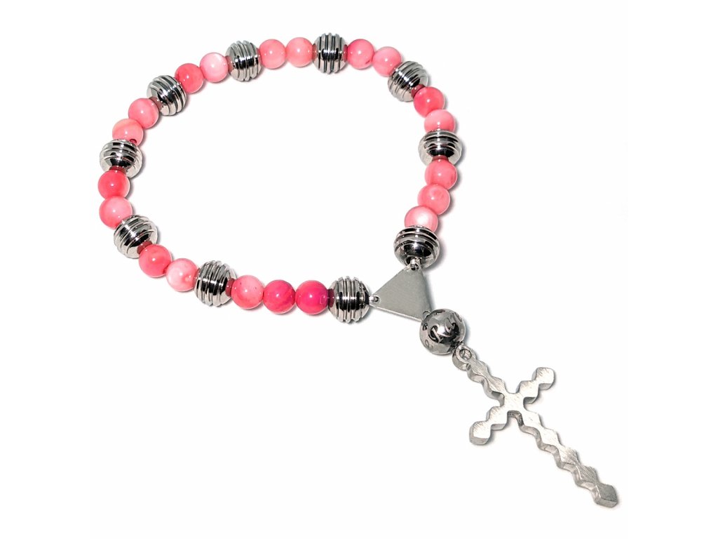 Růženec - desátek z chirurgické oceli a růžové lastury