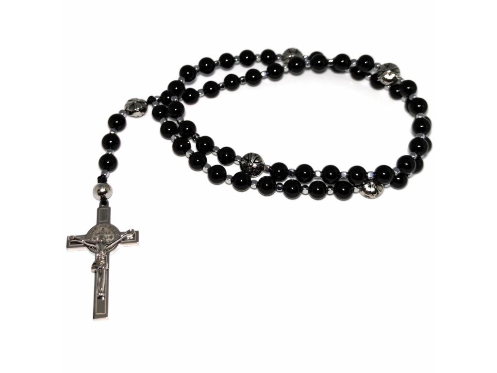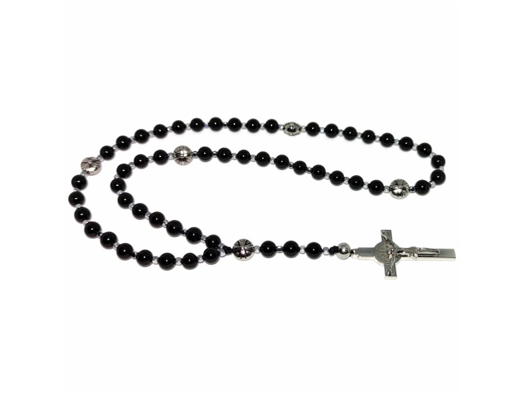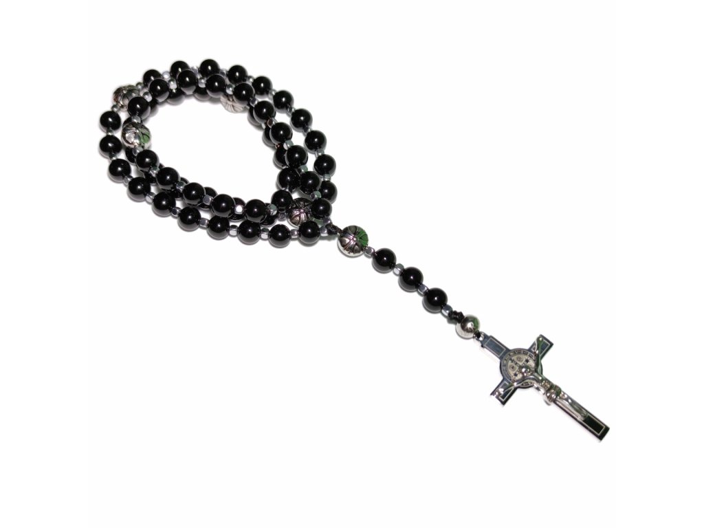 • ručně vyrobený růženec v České republice je navlečený na jemném odolném 1mm nylonovém provázku černé barvy (nelze natáhnout)