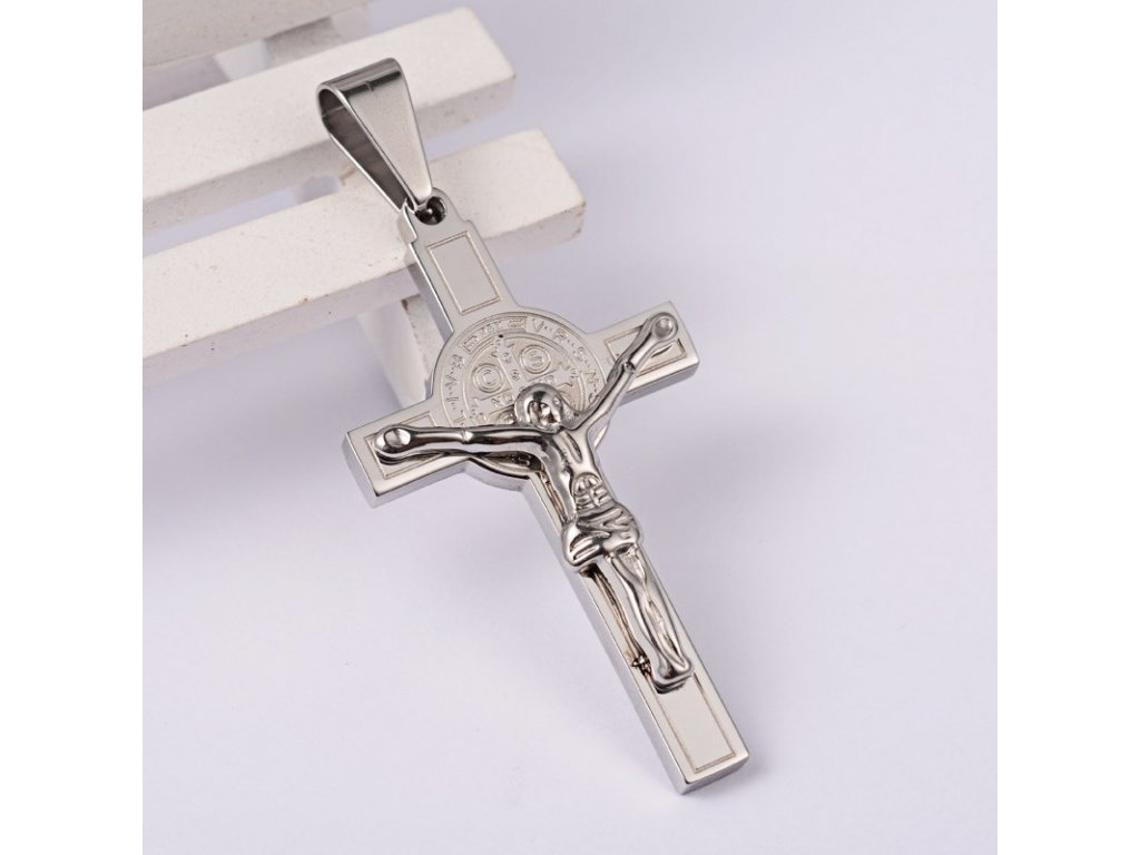• oboustranný křesťanský kříž s ukřižovaným Ježíšem z chirurgické oceli 50x28x6mm ve vysoké kvalitě zpracování