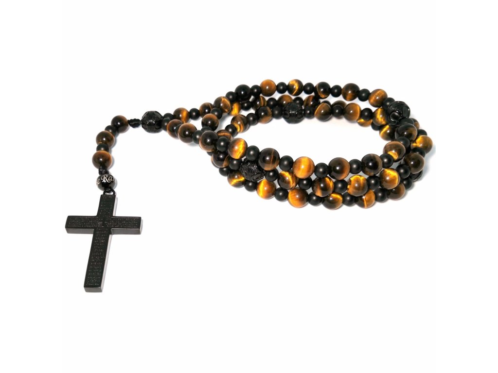 Růženec vyrábíme v nejlepší jakosti minerálních korálků tygřího oka a chirurgické oceli.