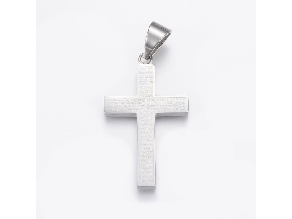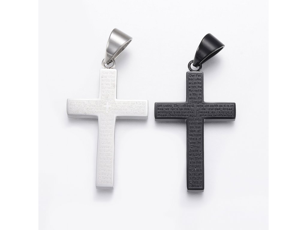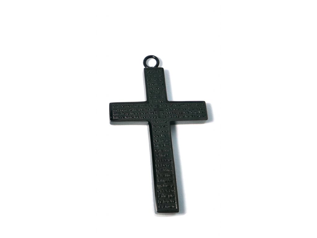 - křesťanský černý lesklý kříž z chirurgické oceli s modlitbou Our Father 46x28x4mm ve vysoké kvalitě zpracování